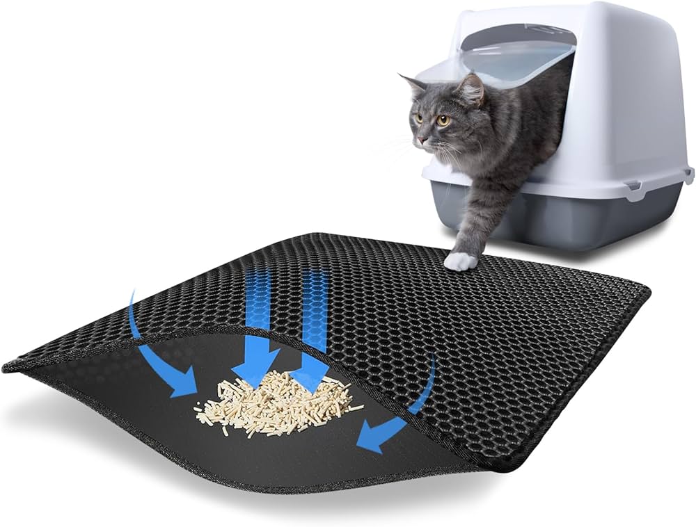 Ce tapis de litière pour chat imperméable est conçu avec une surface en nid d'abeille qui permet de piéger efficacement la litière. Lorsque votre chat sort de sa litière, les granulés restent coincés dans les alvéoles, évitant ainsi les saletés sur le sol.
